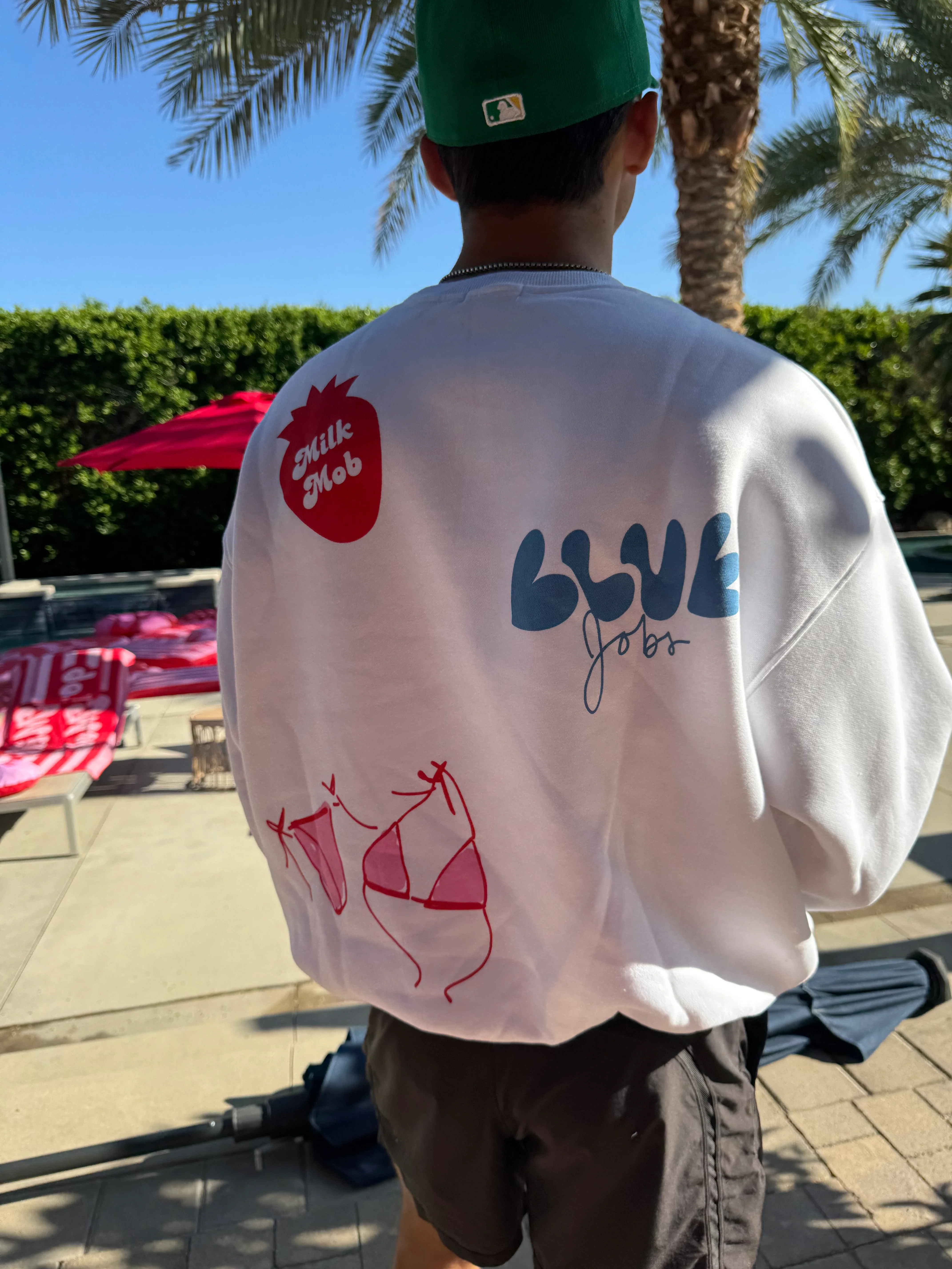 So soft, it feels like a hug from the berries! Celebrate Coachella 2025 in our Milkchella Crewneck Sweatshirt—your official uniform for late-night stage hopping, stargazing, and spontaneous road trips. This drop features bold, graffiti-style lettering splashed across the front, back, and sleeves. Made for those cooler desert moments when the sun dips low but the music keeps going. Cozy, plush, and impossible to forget—just like the weekend it was made for!