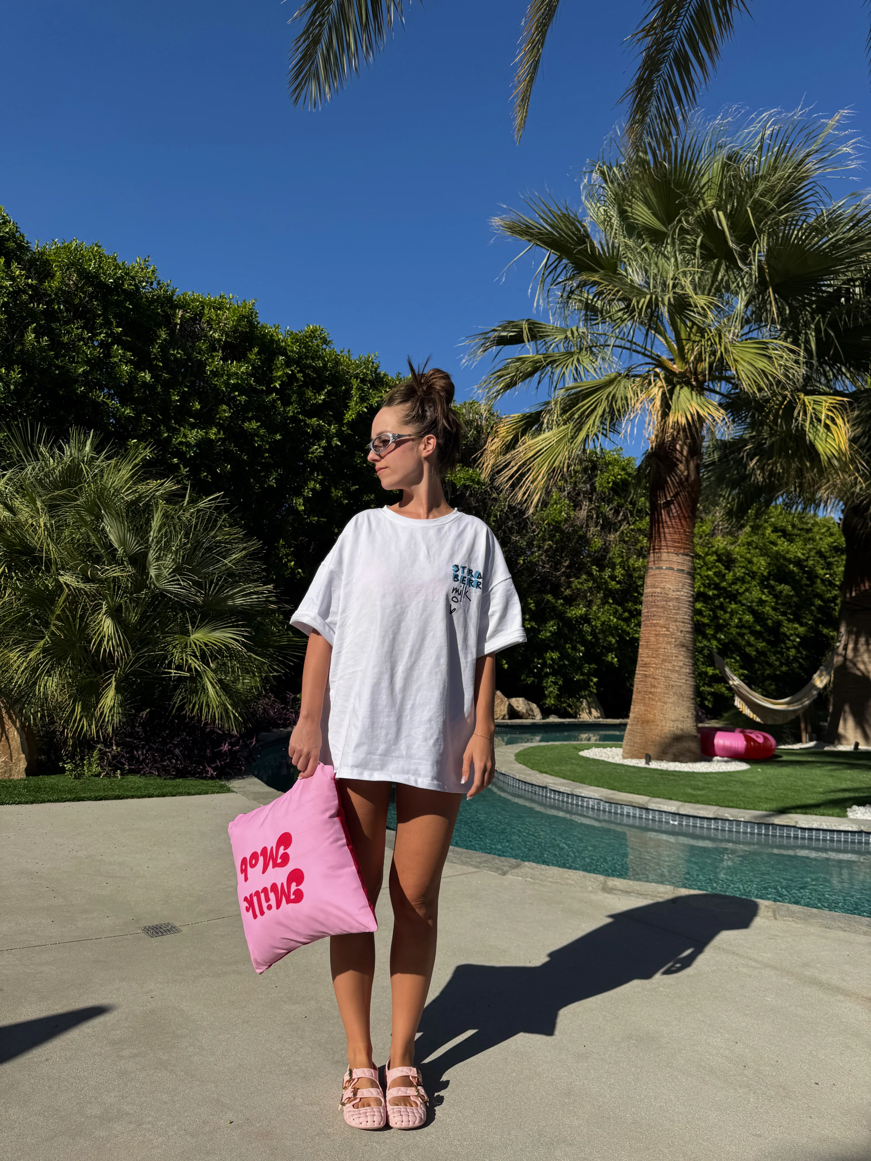 Celebrate Coachella 2025 with the berries! Our Milkchella T-Shirt is your go-to for hot festival days and chill summer hangs. Featuring bold, graffiti-style lettering on the front and back, this comfy short sleeve shirt brings all the cozy vibes. Lightweight, breathable, and bursting with personality—this limited edition drop is your wearable souvenir from the best weekend ever.