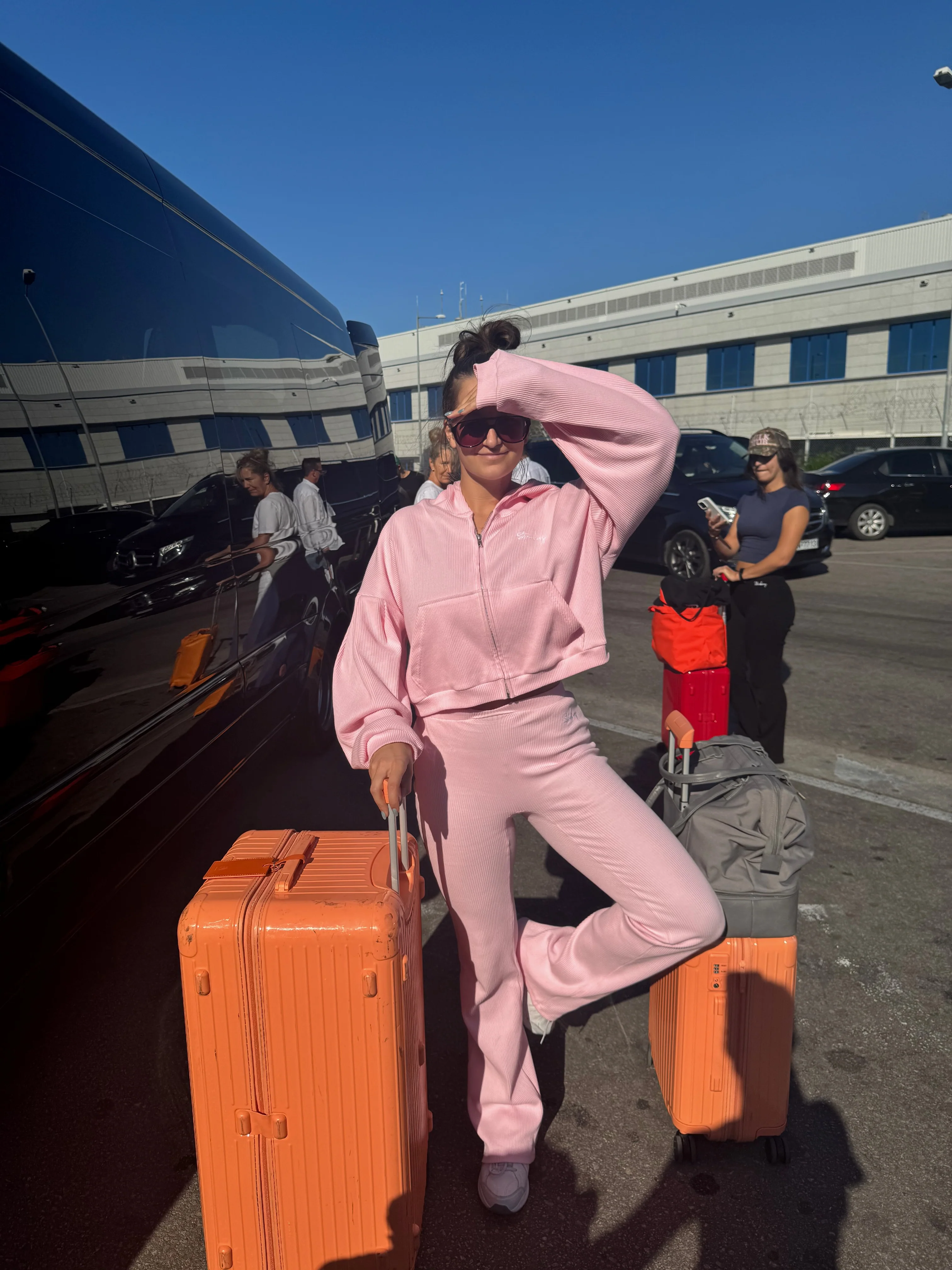 These comfy pink airplane pants are perfect for long flights, combining cozy fabric with a relaxed fit that makes travel feel like lounging at home!
