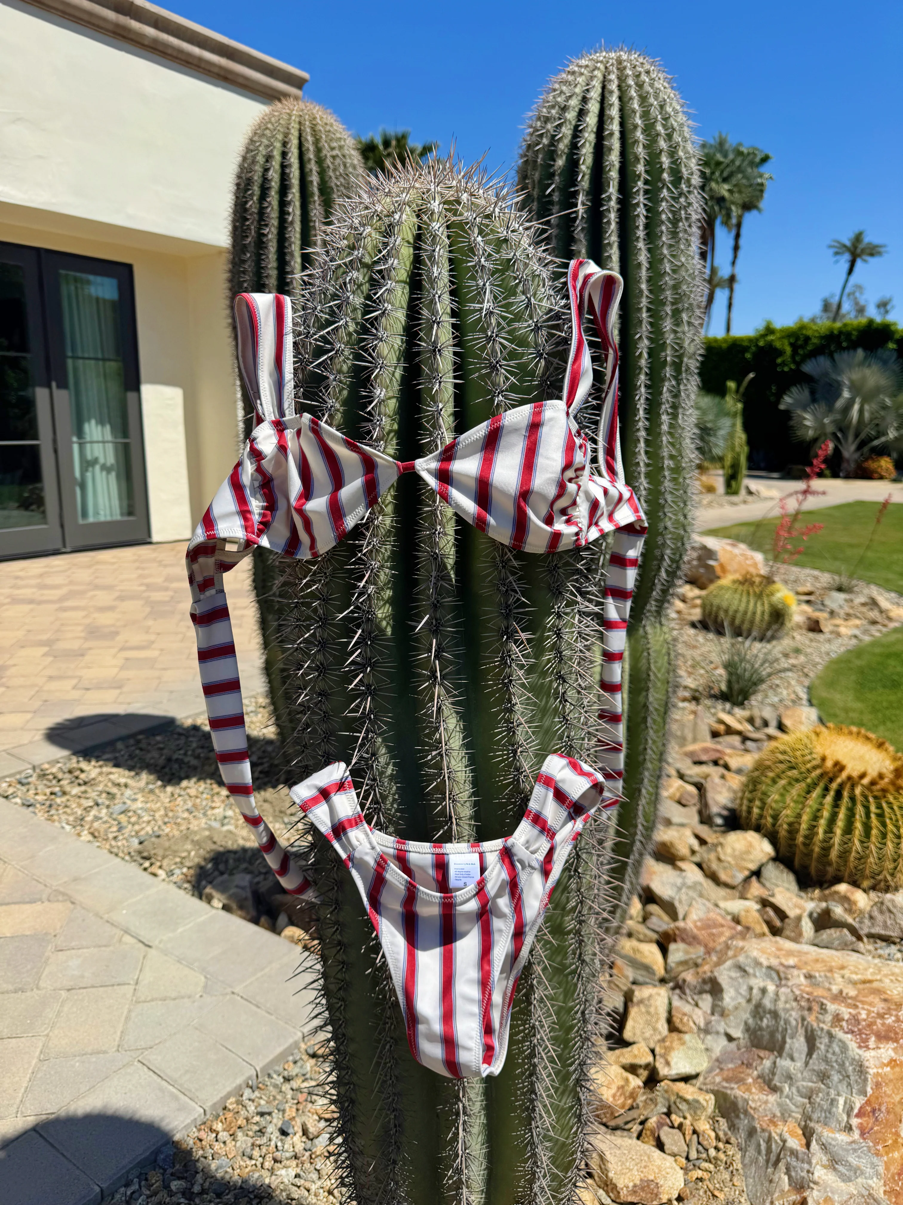 Meet Terracotta—your new go-to bikini top with just the right mix of spice and sweet. Featuring a dreamy cream and burgundy striped design, this top is made for sun-soaked days and salty hair. With wide, comfy neck straps and a flattering bow-tie back, Terracotta gives you that perfect, fuss-free fit (no digging, no drama). Designed without padding for effortless comfort and natural shape.
